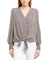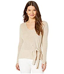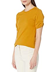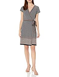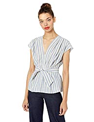 Items from left to right (Women's Knot Detail Short Sleeve Sweater, Women's sheer Utility Blouse, and Women's Short sleeve Wrap Dress)