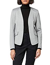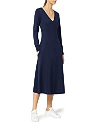 Items from left to right (Women's Relaxed Fit Jersey Tie Front Top, Women's A-Line V-Neck Midi Dress with Pockets, and Women's Collarless Stretch Jersey Comfort Blazer)