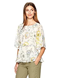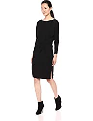 Items from left to right (Women's Jennilee Textured Rib Knit Dress with Boat Neck and Waist Tie, Women's Keenan Floral Printed Peplum Blouse, and Women's Courtney Speckled Sleeveless Mock Neck)